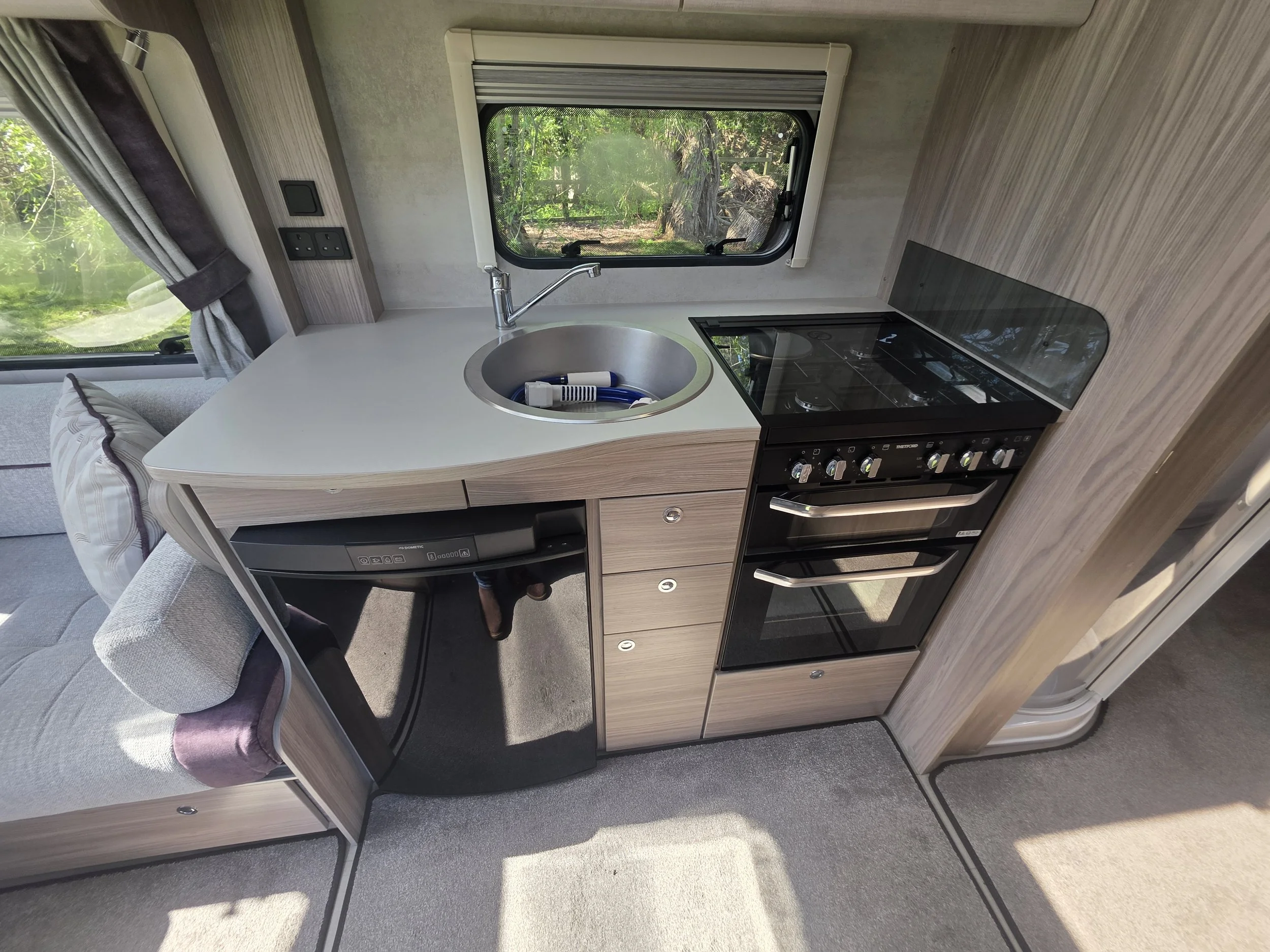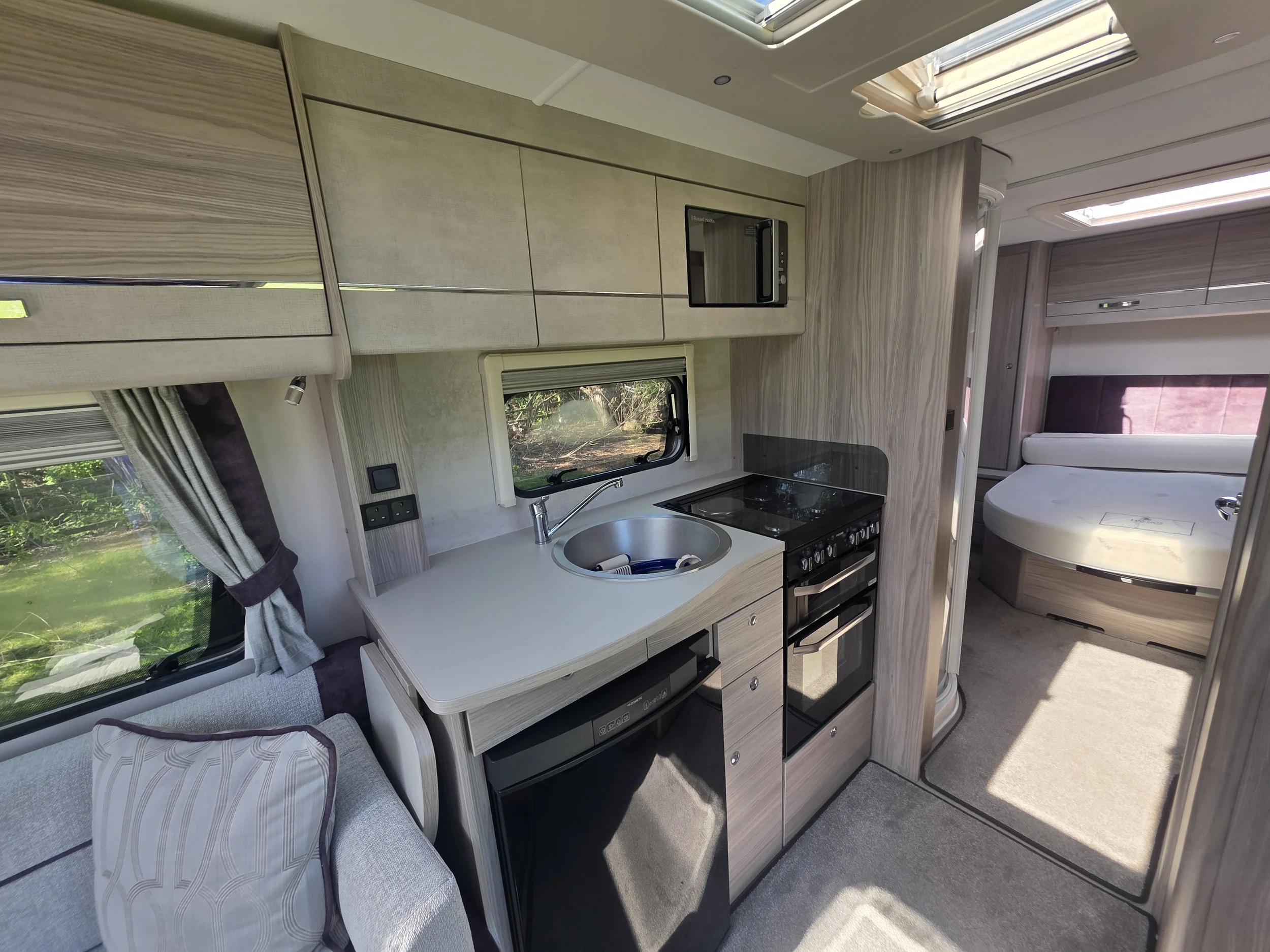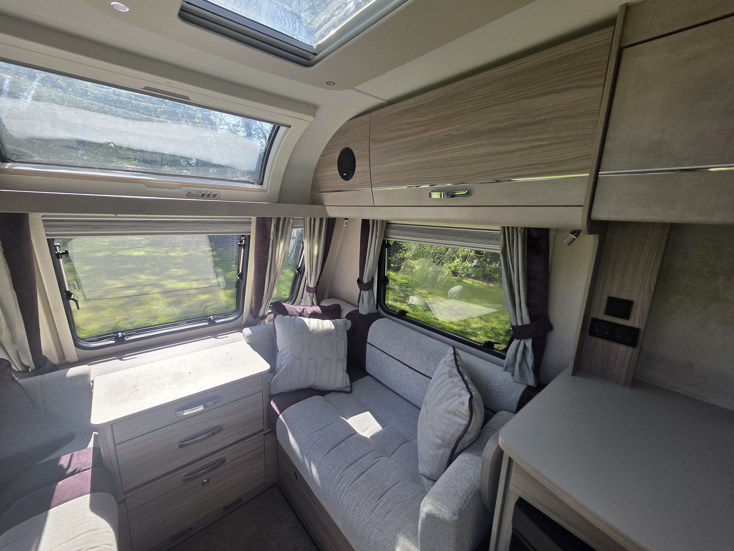 With its modern furnishings, excellent natural light and Alde wet central heating, the Avante Riva 550 is suitable for year‑round use.